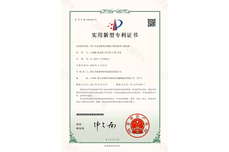 • 用于生態凈醛型內墻膩子粉制備的干燥裝置
